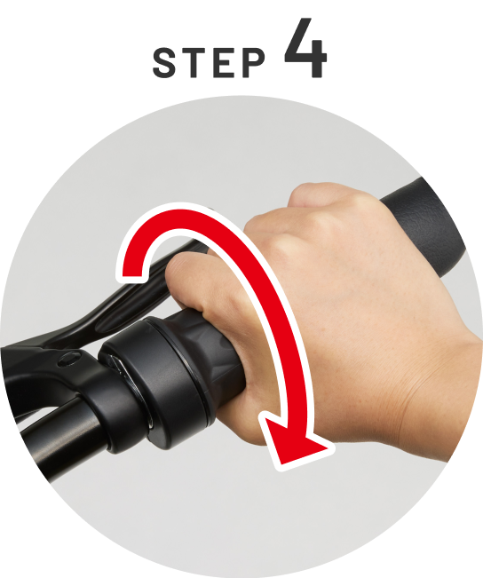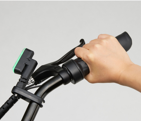 右手のスロットルを回すだけで発進・加速ができるシンプル操作。 電動アシスト自転車とは異なり、ペダルをこぐ必要がありません。