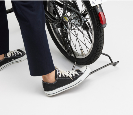 車体を軽い力で立てられるスタンドを採用。 MUは24kgとしっかりした車体ですが、スタンド操作が軽く、扱いやすさが向上しています。