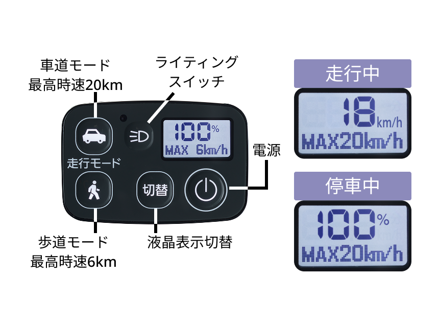 • 最高速度は20km/h(車道モード)
