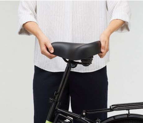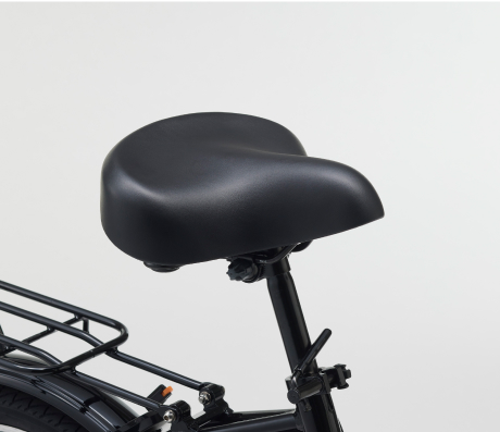 幅広でクッション性の高いサドルを採用し、長時間の走行でも疲れにくい設計。 またぎやすいU型フレームとの組み合わせで、快適な乗車姿勢をサポートします。