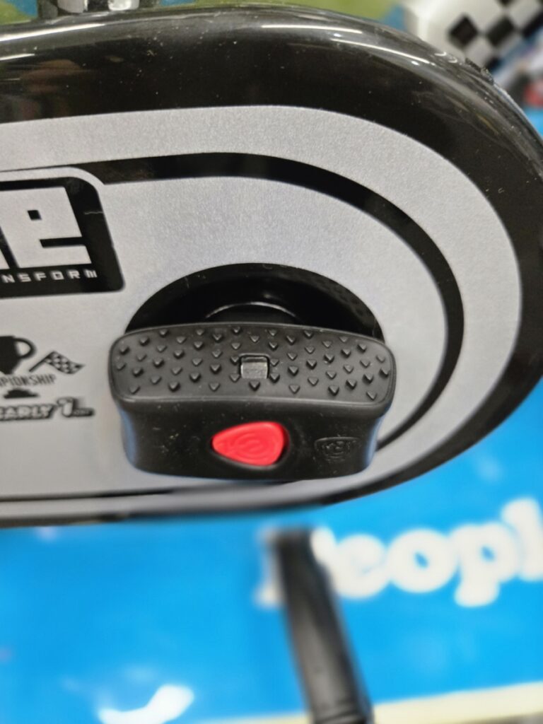 ペダルが付くシャフト部に黒いブロックが付いてます。これはペダル無しの状態で練習するモードなので、この黒いブロックに足を乗せれるように滑り止め加工がされてます。