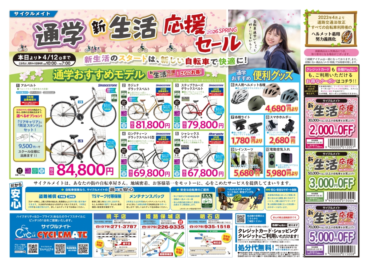 カテゴリー:北村匠海(1件) 2023年01月25日 サイクルランドナニワ本店(スポーツ館) Tern×ドラマ『星降る夜に』 みなさんこんにちは。 大寒波到来です。 各地で雪や風の影響を受け、列車が止まったりしているようです。 予報の確認を徹底し、余裕を持って過ごしたいですね。 突然ですが、1月17日から放送されているテ...